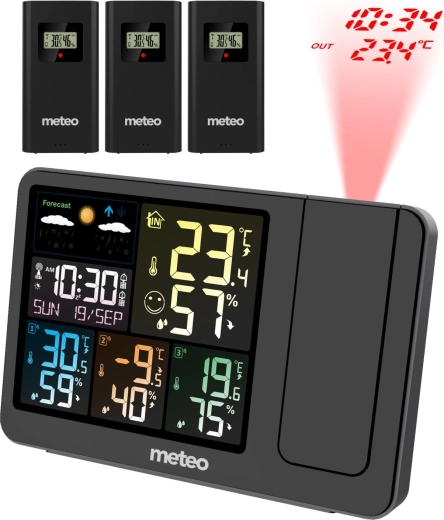Ta vremenska postaja je opremljena z laserskim projektorjem, ki prikazuje aktualni čas in temperaturo na steno ali strop. Idealna je za enostavnejše in hitrejše spremljanje informacij brez potrebe po prižiganju luči.