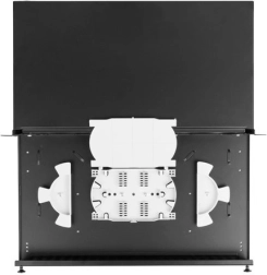 Predal preklopne omarice je mogoče varno izvleči ali popolnoma odstraniti. Tako dobite odličen dostop za varjenje vlaken, čiščenje in vzdrževanje brez potrebe po odstranitvi celotnega panela iz racka.