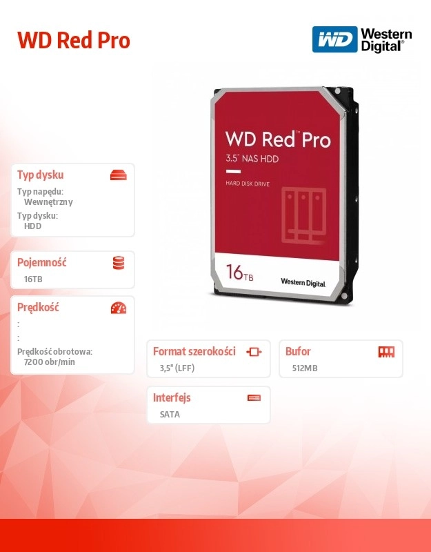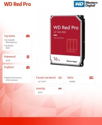 Trdi disk WD Red Pro 16 TB 3,5" SATA III 7200 vrt./min 512 MB predpomnilnika