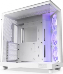NZXT H6 Flow RGB dvigne sestavljanje računalnika na višjo raven. Panoramske steklene plošče z brezšivnim robom poudarijo vaše komponente, medtem ko kompaktna dvo-komorna postavitev loči kable in napajanje od glavnih delov sistema za čist pretok zraka in estetiko.