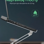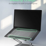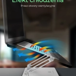 Zahvaljujoč silikonskim trakom na zgornjem in spodnjem robu ploščadi je naprava zaščitena pred zdrsom tudi pri večjem nagibu. Perforirana konstrukcija dodatno podpira boljši odvod toplote, zato prenosnik ostaja dobro hlajen tudi pri zahtevnem delovanju.