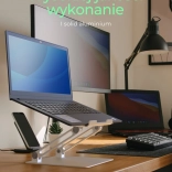 Stabilno in stilsko stojalo za prenosnik do 17" iz kakovostnega aluminija za ergonomsko delo. Ponuja nastavljivo višino, protizdrsne elemente in učinkovito hlajenje zaradi perforirane površine. Zaradi oblike Z lahko zlahka nastavite zaslon na višino oči ter razbremenite vrat in ramena.