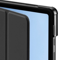 Natančno oblikovani izrezi zagotavljajo popoln dostop do vrat in gumbov, medtem ko trpežen material ščiti napravo z vseh strani. Minimalistična črna zasnova poudari sodoben videz vaše tablice in hkrati nudi zanesljivost pri vsakodnevni uporabi doma in na poti.