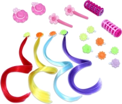 V paketu najdete vse potrebno za ure in ure zabave in vadbe: glavnik za razčesavanje, stilski »kodralnik« za oblikovanje, sponke za fiksiranje pričeske in barvne pramene za izviren videz. Igra spodbuja razvoj kreativnosti, potrpežljivosti in fine motorike.