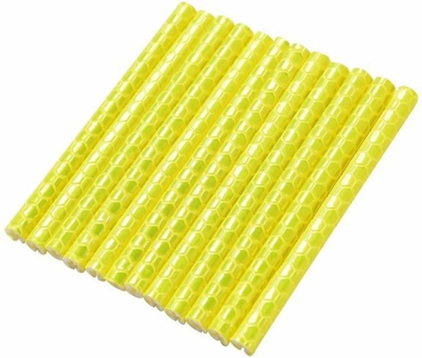 Odsevne cevke, nameščene na napere kolesa. Komplet vsebuje 12 odsevnikov. Enostavna namestitev z uporabo 3M traku. Odsevniki so po temi dobro vidni in bistveno povečajo našo varnost na cesti.