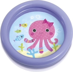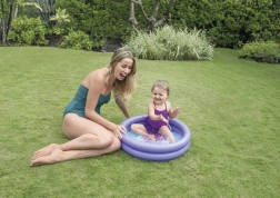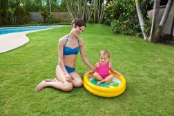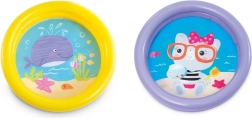 Lahek in priročen otroški bazen s premerom 61 cm in višino 15 cm je idealen za balkon, teraso in vrt. Ima dve napihljivi komori, izdelan je iz odpornega vinila in z veselim dizajnom razveseli otroke od 1 do 3 let. Enostavno postavljanje in pospravljanje, prostornina približno 17 l pri višini vodne gladine 8 cm, vključno z kompletom za popravilo.