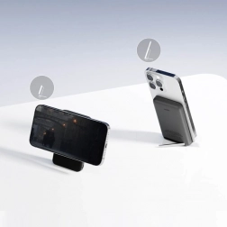 Z funkcijo Pass-Through lahko power banka deluje hkrati kot namizni polnilnik – ko je priključena na napajanje, polni sebe in napravo sočasno. Kompaktno ohišje z zložljivim stojalom omogoča udobno gledanje videov ali video klicev brez držanja v roki. LED indikator s štirimi diodami jasno prikazuje stanje napolnjenosti.