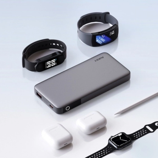Kompaktna power banka AUKEY Sprint X 10K s kapaciteto 10.000 mAh in močjo 30 W ponuja hitro polnjenje PD 3.0 in QC 3.0, dva izhoda USB‑C + USB‑A, natančen LED zaslon stanja baterije ter način nizkega toka za slušalke ali pametne ure. Lahka, žepna in idealna za potovanja in letalo.