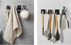 Montaža je hitra in brez orodja: priložen obojestranski trak predgrejte s sušilnikom za lase, prilepite, močno pritisnite in po 48 urah lahko kavlje popolnoma obremenite. V kompletu dobite vse potrebno ter dodatno zaščitno polnilo embalaže za varno dostavo.