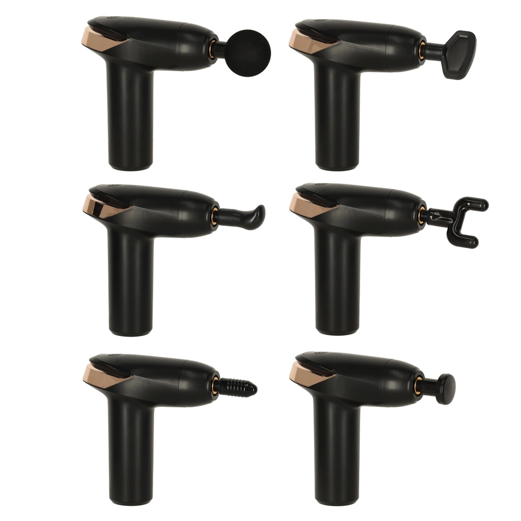 Masažna pištola ponuja 6 stopenj intenzivnosti – od nežnih, sprostitvenih vibracij do močnejših udarcev, ki učinkovito stimulirajo globlje dele mišic. Šest zamenljivih nastavkov zagotavlja optimalno masažo različnih delov telesa, da je vsak tretma kar se da učinkovit.