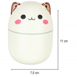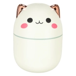Prisrčen namizni vlažilnik zraka v obliki mačke z RGB osvetlitvijo ustvarja čisto, nežno meglico za prijetnejše bivalno okolje doma ali v pisarni. Zahvaljujoč 250 ml rezervoarju vlaži več ur, ima 2 načina delovanja (neprekinjen in prekinjen) ter se priročno napaja prek USB. Odličen dodatek za bolj zdrav zrak, boljši spanec in prijetno atmosfero.