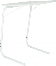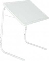 Uživajte v udobnem delu in zabavi na kavču, v naslanjaču ali ob postelji. Večnamenska bela mizica za prenosnik združuje stabilno kovinsko konstrukcijo s praktično plastično ploščo in se zahvaljujoč nastavitvi višine in nagiba zlahka prilagodi vašemu položaju. Povišana letvica na spodnjem robu plošče ščiti prenosnik pred zdrsom tudi pri večjem naklonu.