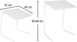 Mizico v nekaj sekundah zložite in shranite pod posteljo, v omaro ali v kot prostora. Prostorna delovna površina 52 × 40 cm nudi prostor za prenosnik, knjigo in dokumente, zato je idealna za delo od doma, branje in postrežbo.