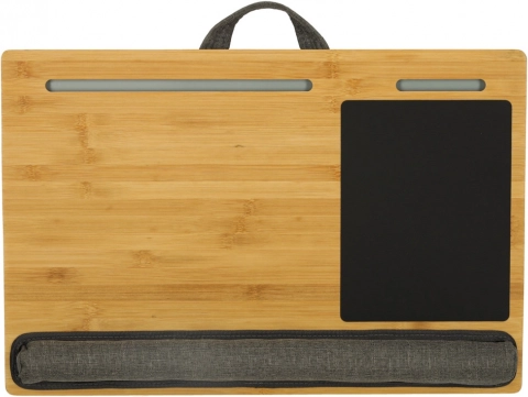 Praktične rešitve, kot sta namenska površina za miško in reže/utori za tablico ali telefon, omogočajo, da imate vse pri roki in delate učinkovito. Zahvaljujoč vgrajenemu ročaju se mizica zlahka prenaša, zato lahko udoben delovni prostor ustvarite kjerkoli – v spalnici, dnevni sobi ali na prostem.
