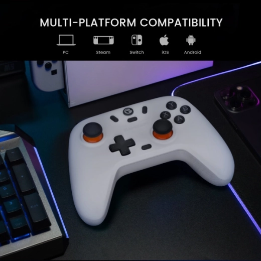 Uživajte v gladkem in natančnem igranju s krmilnikom GameSir T4n Lite. Hallove ročice odpravljajo drift, analogni sprožilci zagotavljajo fino doziranje, s tremi načini povezave pa enostavno preklapljate med napravami. Bela zasnova, ergonomija in kakovostni materiali ga naredijo zanesljivega partnerja za dolge igralne seanse.