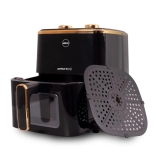 Dva upravljalna gumba za temperaturo in čas, odstranljiva košara in mrežica z nelepljivo površino za enostavno čiščenje brez vpijanja vonjav.
