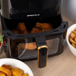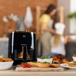 Tehnologija kroženja vročega zraka pripravlja jedi hitro, enakomerno in z minimalno količino olja – znotraj sočne, zunaj hrustljave.