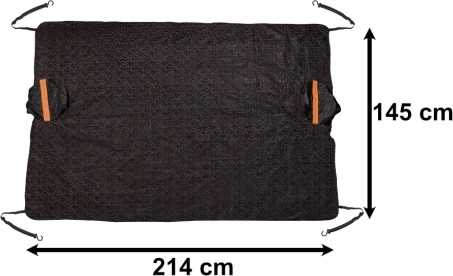 Podloga je opremljena z 12 všitimi magneti, ki jo trdno držijo na mestu. Kavljasta pritrdila na platišča zagotavljajo, da se podloga ne premakne niti ob močnem vetru.