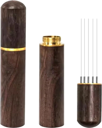 Kompaktno mešalo, igle za distribucijo kave. Ergonomična zasnova, opremljena z udobnim ročajem in ohišjem z videzom lesa. Idealno za odpravljanje kanalinga pri pripravi espresso kave. Univerzalne mere – primerno za večino aparatov za espresso in kavomatov.