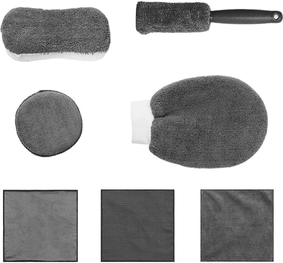 - Komplet devetih kosov dodatkov za natančno čiščenje avtomobila.