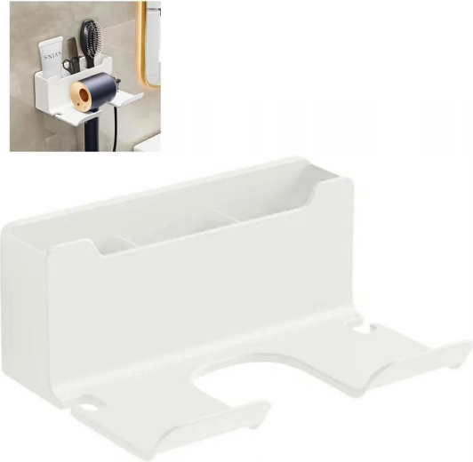 Stenski nosilec za sušilnik za lase je zasnovan tako, da nudi udobno in prostorsko varčno rešitev za vašo kopalnico. Namesti se zelo preprosto z uporabo obojestranskega lepilnega traku, kar povečuje njegovo univerzalnost in omogoča enostavno namestitev v različnih prostorih.
