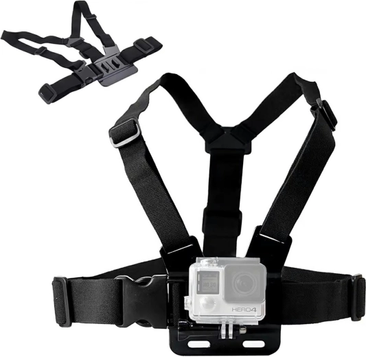 Udoben prsni nosilec za športno kamero GoPro. Prsni nosilec omogoča namestitev kamere na sprednji strani. Idealen za športne aktivnosti, smučanje in kolesarjenje. Univerzalna zasnova omogoča pritrditev katerega koli modela kamere od GoPro do DJI, SJCAM in drugih proizvajalcev. Mehki in elastični trakovi zagotavljajo udobje pri nošenju nosilca v vseh pogojih. V kompletu sta tudi adapter in montažni vijak za pritrditev pametnega telefona.