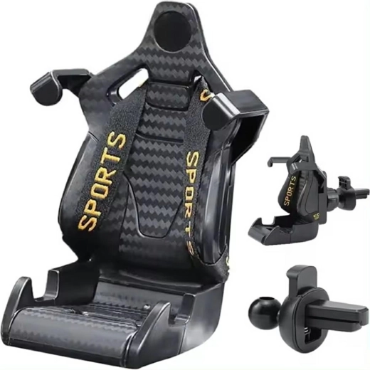 Univerzalni avtomobilski nosilec za mobilne naprave. Izvirna oblika v slogu dirkalnega sedeža. Pritrditev na zračne reže s sponko omogoča udobno upravljanje telefona med vožnjo. Popolnoma nastavljiv kot 360 stopinj za optimalno postavitev telefona. Udobna nastavljiva ročica dodatno poveča udobje. Združljiv z vsemi standardnimi pametnimi telefoni.