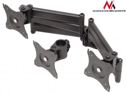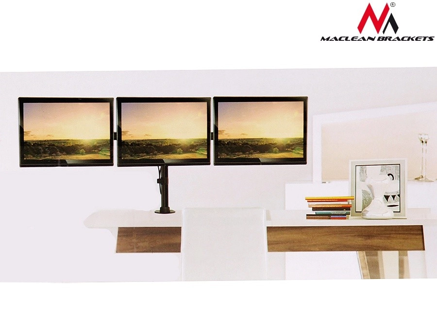 To kakovostno držalo iz jekla in tlačno litega aluminija omogoča pregledno in udobno razporeditev treh monitorjev na enem stojalu. Zaradi možnosti pritrditve na rob mize z vzdržljivo objemko vrtanje ni potrebno, zato je namestitev hitra in zanesljiva. Idealna rešitev za pisarno, domačo delovno sobo ali igralni setup, kjer boste cenili boljšo ergonomijo, višjo produktivnost in čist delovni prostor.