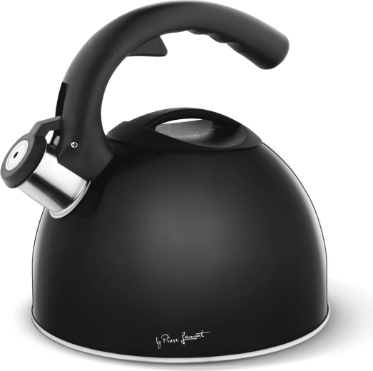 Čajnik Cuivre 3 l v črni izvedbi izstopa s čistim dizajnom in funkcionalnimi podrobnostmi. Praktična piščalka vas opozori, ko voda zavre, medtem ko ergonomsko oblikovan ročaj zagotavlja varno in udobno nalivanje. Velika prostornina je primerna za družine, obiske in pogosto uporabo čez dan.