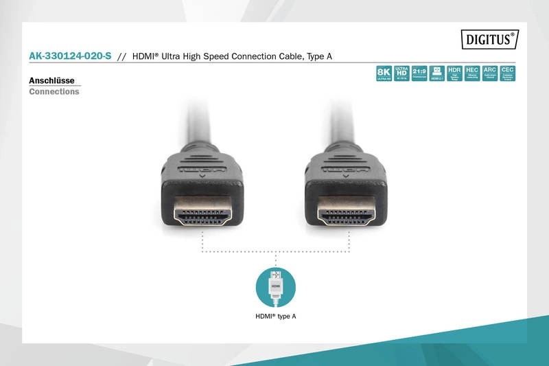 Kabel je opremljen s pozlačenimi priključki za minimalne izgube signala in dolgo življenjsko dobo. Ponuja celoten nabor funkcij, kot so ARC/eARC, CEC, HEC, Lip Sync, 3D, format 21:9 in 32-kanalni zvok. Odlično poveže Blu-ray predvajalnike, igralne konzole, set-top boxe, računalnike ter TV/monitorje.