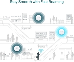Upravljajte omrežje centralno iz oblaka, nadzorujte promet in preprosto uvajajte več dostopnih točk z Omada SDN. Mesh povezovanje zmanjšuje potrebo po kablih, nemoten roaming pa ohranja klice in video brez prekinitev.