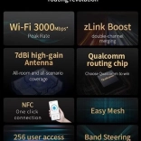 Tehnologija Easy Mesh omogoča preprosto razširitev pokritosti Wi‑Fi, medtem ko NFC omogoča hitro seznanjanje naprav brez gesla.