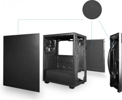 To črno ohišje PC Mid Tower združuje čist, eleganten sprednji panel s sodobno notranjo postavitvijo za enostavno sestavo in prihodnje nadgradnje. Zaradi premišljenega pretoka zraka in dovolj montažnih mest bodo vaše komponente hladne tudi pri visoki obremenitvi.