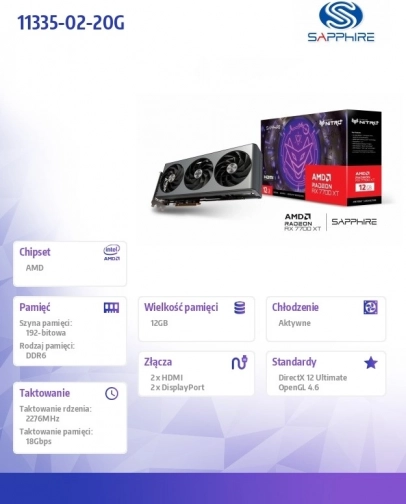 Sapphire Nitro+ AMD Radeon RX 7700 XT je vrhunska grafična kartica, ki vam nudi izjemne vizualne izkušnje zahvaljujoč najsodobnejši tehnologiji hlajenja in zmogljivosti. S 12 GB pomnilnika GDDR6 zagotavlja gladko delovanje tudi najzahtevnejših iger in aplikacij.