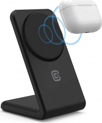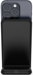 Elegantno stojalo MagSpot Stand 2v1 prinaša hitro in udobno brezžično polnjenje. Magnetna pritrditev MagSafe trdno drži iPhone, zato lahko spremljate obvestila, videe ali uporabljate način StandBy v iOS 17. Hkrati brezžično napolnite tudi ohišje slušalk AirPods.