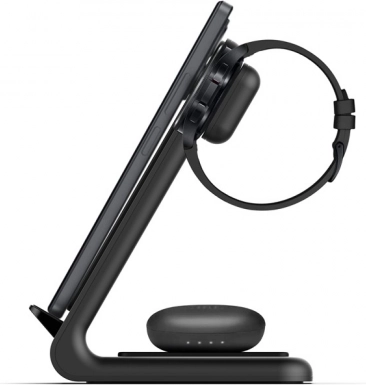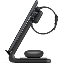 Pospravite mizo z inteligentno postajo, ki zmore vse naenkrat. Brezžični polnilec 3‑v‑1 PowerSpot združuje stojalo za telefon, modul za Galaxy Watch (vsi modeli) in podlogo za TWS slušalke. Zahvaljujoč standardu Qi je združljiv s široko paleto naprav Apple in Android.