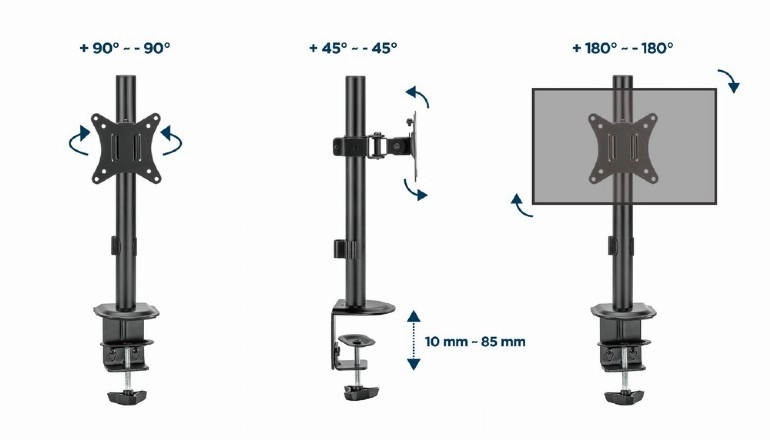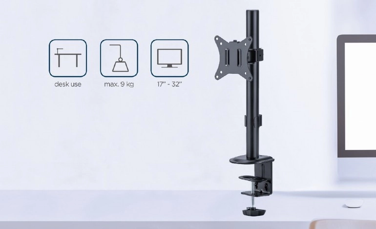 Ta nosilec za monitor z enim rokom je idealna izbira za vsakogar, ki išče način, kako optimizirati ergonomijo svojega delovnega prostora. Omogoča enostavno nastavitev višine, obračanja in nagibanja zaslona glede na vaše potrebe.