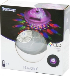 Plavajoča LED luč za bazen BESTWAY je stilski in praktičen dodatek za večerno kopanje, vrtne zabave in romantične trenutke. Brez kablov in zapletene namestitve nudi efektno podsvetljevanje vodne gladine v 4 barvah (rdeča, modra, rumena, zelena) in s 7 dinamičnimi načini. Dovolj je vstaviti baterije, položiti na gladino in pritisniti gumb.