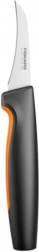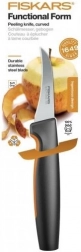 Fiskars Functional Form ukrivljen nož za lupljenje je zasnovan za enostavno vzdrževanje in vsakodnevno uporabo. Ima ergonomsko ročico s SoftGrip prevleko na spodnji strani in veliko zaščito za prste, kar zagotavlja udoben in varen oprijem. Ta nož je enostaven za shranjevanje in vzdrževanje, lahko ga pomivate v pomivalnem stroju.