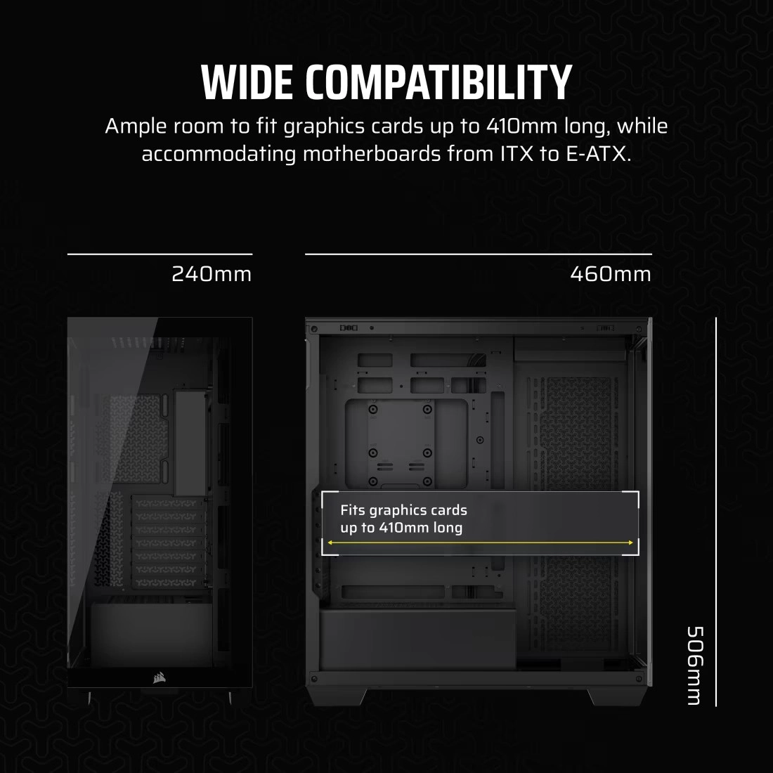 Sestavite zmogljiv računalnik brez omejitev. Ohišje 3500X je zasnovano tako, da sprejme večino velikih grafičnih kartic, procesorjev in celo osnovnih plošč formata EATX, ne da bi po nepotrebnem zavzemalo veliko prostora na mizi.