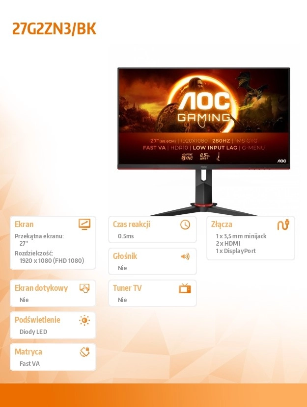 Monitor 27G2ZN3 27" Fast VA 280Hz HDMIx2 DP Pivot