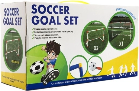 Popoln komplet za male nogometne navdušence! Ta večfunkcijski nogometni komplet omogoča enostavno sestavo enega večjega ali dveh manjših ciljev. Vključuje tudi žogo in tlačilko, tako da imate vse komponente takoj pri roki za začetek igre.