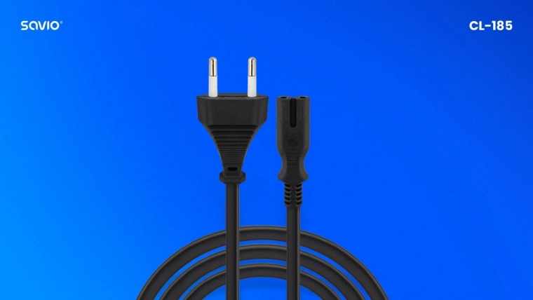 Zanesljiv napajalni kabel SAVIO CL-185 z dolžino 5 m ponuja varno in stabilno napajanje za domače in pisarniške naprave. Zahvaljujoč bakrenemu vodniku in priključkoma IEC C7 ter CEE 7/16 (tip C) zagotavlja odlično prevodnost, dolgo življenjsko dobo in široko združljivost z prenosniki, televizorji, napajalniki in drugo opremo.