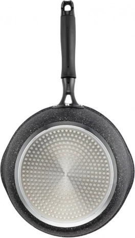 Debelo indukcijsko dno z kovinsko ploščo zagotavlja učinkovito in enakomerno segrevanje. Ponev je primerna za plin, elektriko, steklokeramiko in indukcijo.