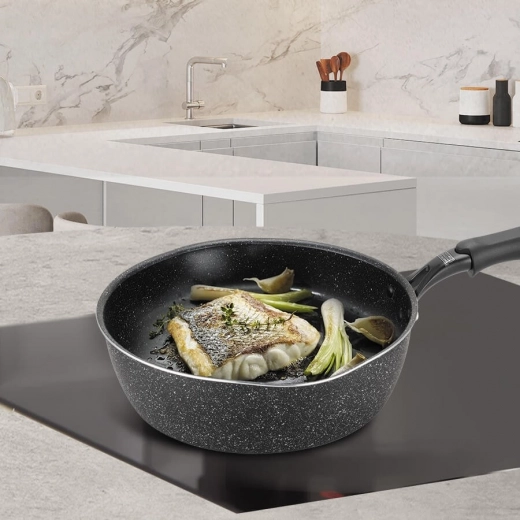 Ta vsestranska globoka ponev iz litega aluminija se hitro in enakomerno segreje, zato prihranite čas in energijo. Notranja nelepljiva plast preprečuje prijemanje sestavin, omogoča kuhanje z manj olja in bistveno olajša čiščenje.