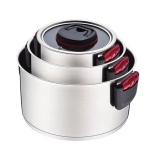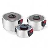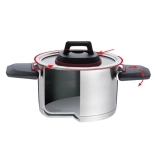 Vsak lonec je opremljen z večslojnim termoakumulacijskim dnom, ki zagotavlja enakomerno segrevanje in zadrževanje toplote za daljši čas. Prozorni stekleni pokrovi z odprtino za odvajanje pare omogočajo kuhanje brez dvigovanja pokrovov. Praktična notranja merilna lestvica olajša natančno merjenje tekočin. Set je združljiv z vsemi vrstami štedilnikov in ga je mogoče pomivati v pomivalnem stroju, kar prispeva k večjemu udobju pri uporabi.