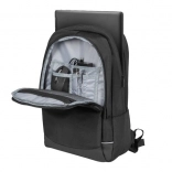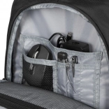 Glavni predel sprejme prenosnik 15,6" in tablico; obe napravi ščiti mehko oblazinjenje ter pritrditev z ježkom, da ostaneta na mestu tudi med potovanjem.