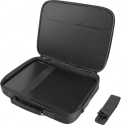 Premišljena notranjost zlahka sprejme polnilnik in dodatke, medtem ko je sprednji žep na zadrgo idealen za dokumente in drobnarije. Trpežen tekstilni material z visoko odpornostjo proti obrabi in povečano zaščito pred vlago varuje vsebino v zahtevnih razmerah. Za udobje skrbita nastavljiv ramenski trak in udoben ročaj, brezčasna črna izvedba z diskretnim logotipom pa poudarja profesionalni slog.