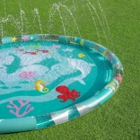 Ta vodna podloga prinese veliko zabave in osvežitve za vso družino ter je idealna za vsak domači vrt. Izdelek je namenjen le za domačo uporabo in pod nadzorom odrasle osebe.