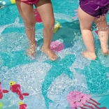 - Podloga v obliki plitkega otroškega bazenčka z napihljivim robom, ki zadržuje vodo.